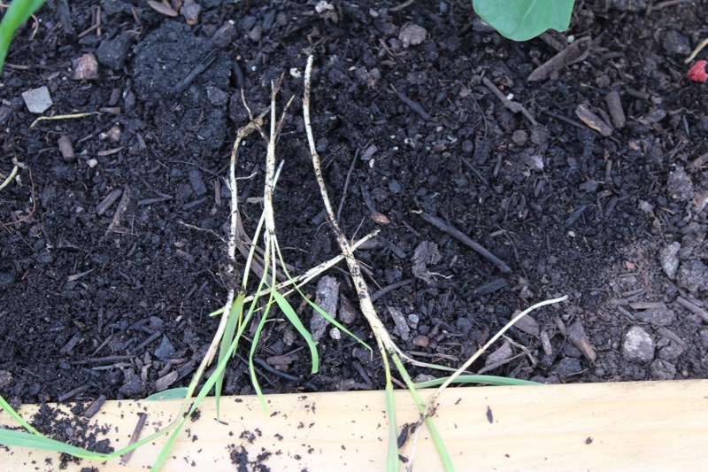 Keep at those perennial weeds such as bindweed, you can weaken them if they are not allowed to reestablish. I show an example of what I remove in the way of couch grass roots. All are growing fast in the heat, but can also tire themselves out if you keep removing new shoots, with a trowel is best to extract the top few inches at least, usually not the original, deep root.