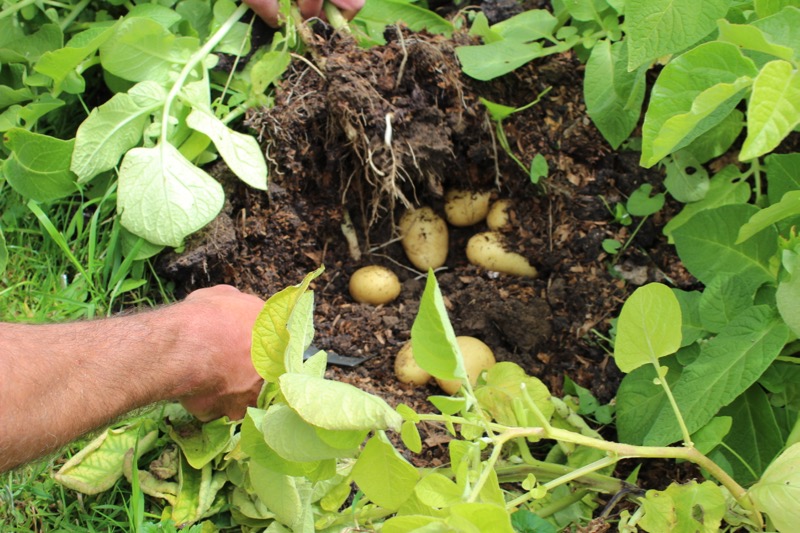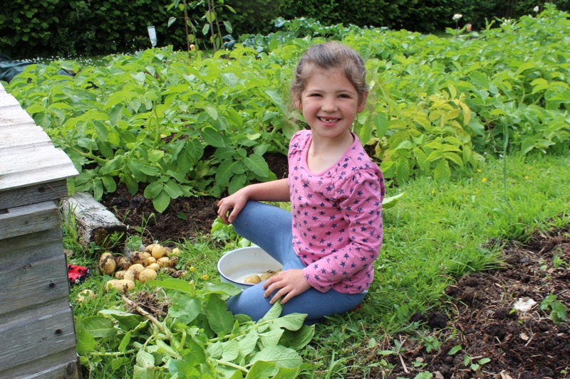 He already has some nice harvests and his daughter is enjoying finding some of the first early potatoes!