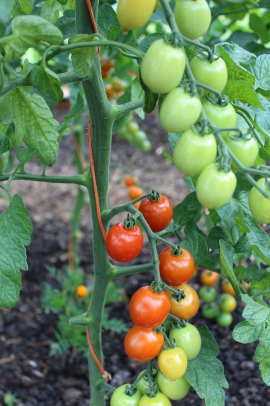 At last the cherry tomatoes are ripening nicely (undercover only!)and recent warmth has helped, After Sungold, Trixi from Bingenheimerseeds has been almost as early. All the cherry tomatoes start to ripen before beef tomatoes, which should happen by August.