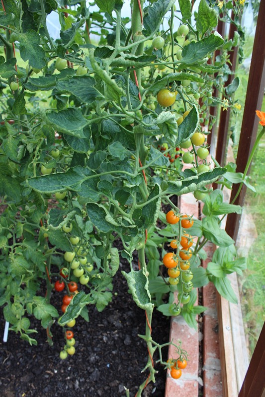 The very first to ripen were Sungold and Rosada off plants I grew from sideshoots taken last October, and grown on in the conservatory overwinter. Its not easy but a worthwhile challenge, and saves buying F1 seeds.