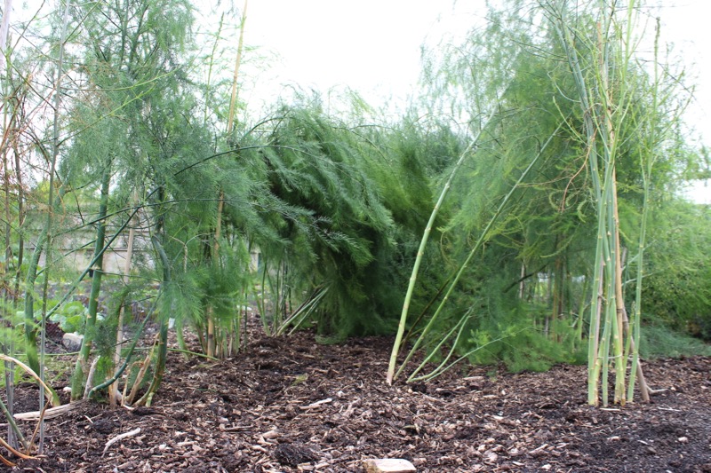 Frequent westerlies here have pruned some of my plants, such as runner beans and asparagus. However most plants have coped well, such as the peas now 6 ft (2m) high. Wind is not all bed, as long as floppy plants are supported.