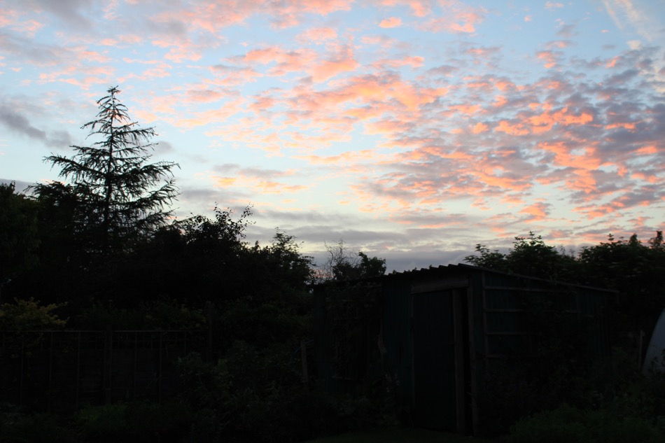 Solstice sunrise at Homeacres, red sky in the morning suggests rain, and it duly arrived,