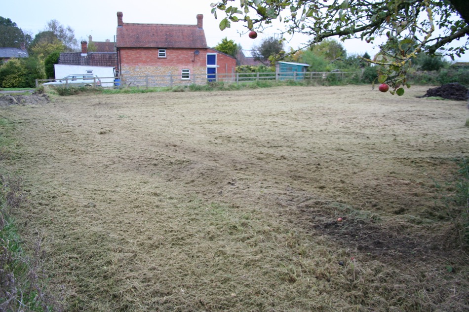 Homeacres when I arrived and after a tractor topped the pasture (hence brown grass on top), looking north in October 2012