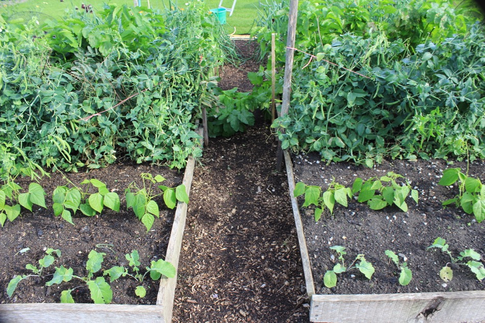 Many second crops are possible when you can be prompt with clearing vegetables that are finishing. For broad beans I often remove them (cut at soil level) when there are still a few pods on, because there is such abundance now that a few extra beans are less valuable than some space to plant. This also means that more nitrogen nodules are left in the soil, before the ageing plants can use them up.