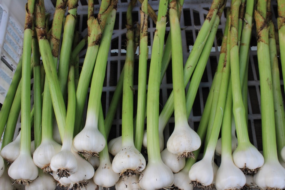Garlic harvested and cleaned of rusty leaves, June 20th