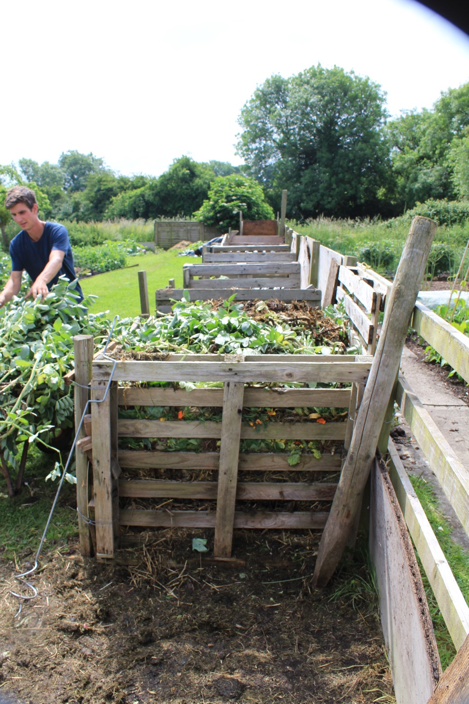 Loading the compost heap, this time we tried not chopping the stems as there is so much heat, and to give structure in the heap