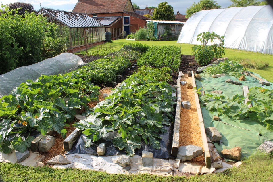 Looking the other way, June 27th 2016. The only beds with wooden sides are closest to camera and are running trials: carrots just sown in bed on right, after spinach