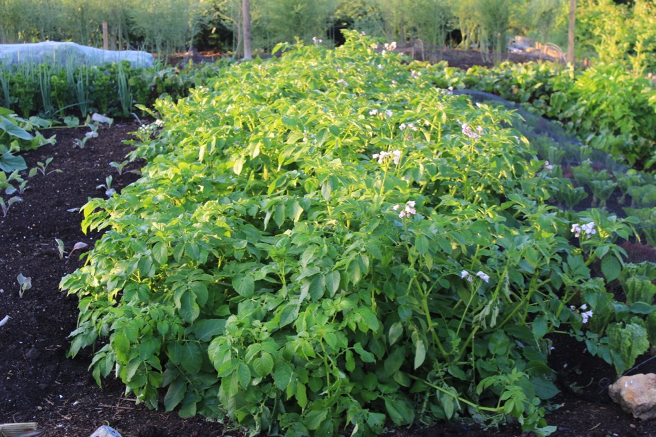 Apache second earlies (also Ulster Prince) are flowering, will grow more if not harvested, are delicious!
