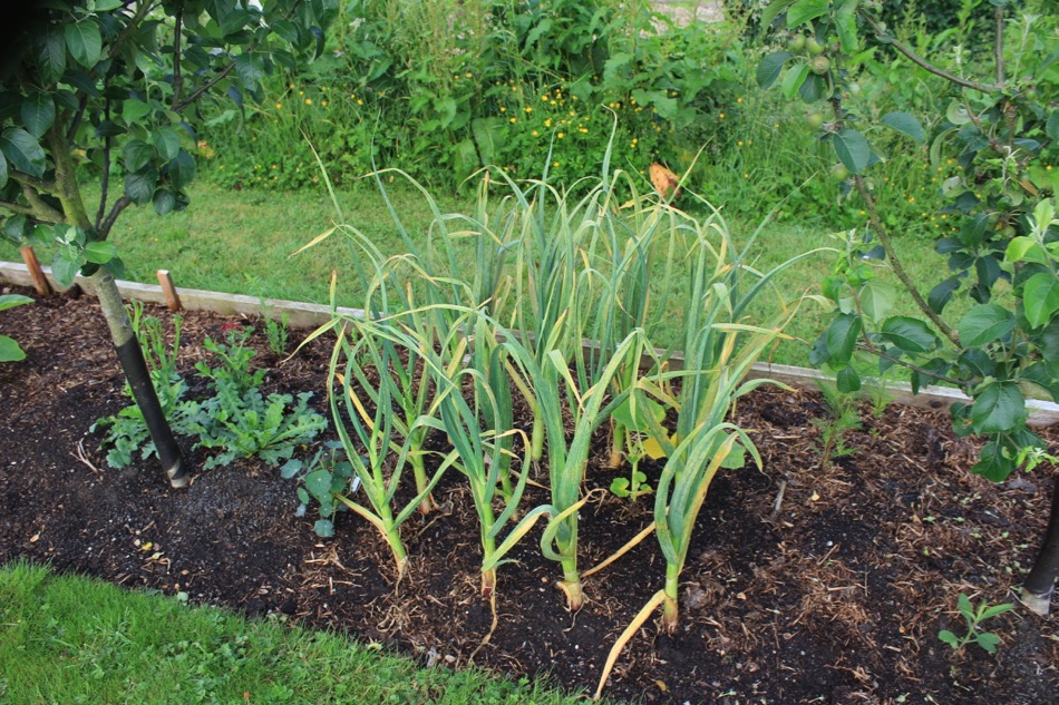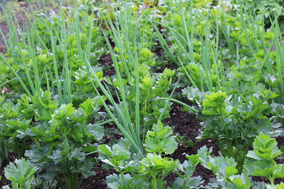 There are many possibilities but you need to be organised about timing and spacing. The spring onions below are an option between celeriac, both planted at the same time in May, because they can use the wide space before it closes - which is soon: we shall harvest these spring onions over the next fortnight.