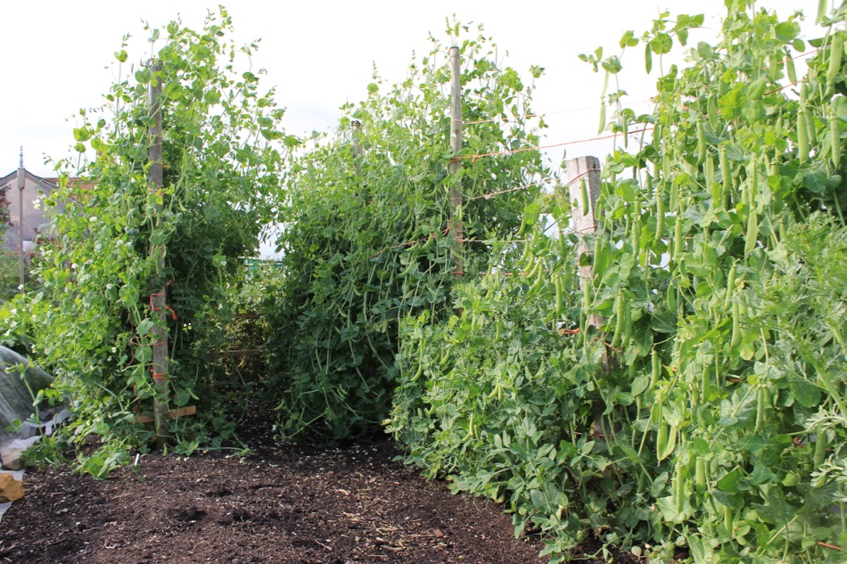 I find it frustrating that gardeners are often advised to do unnecessary work, spend unnecessary money and do unnecessary harm to the soil and soil life. For example the peas you see below have been so easy to grow, just mulched with compost, in soil that had bindweed and couch grass three years ago.