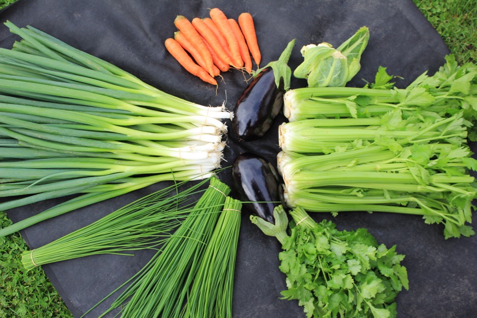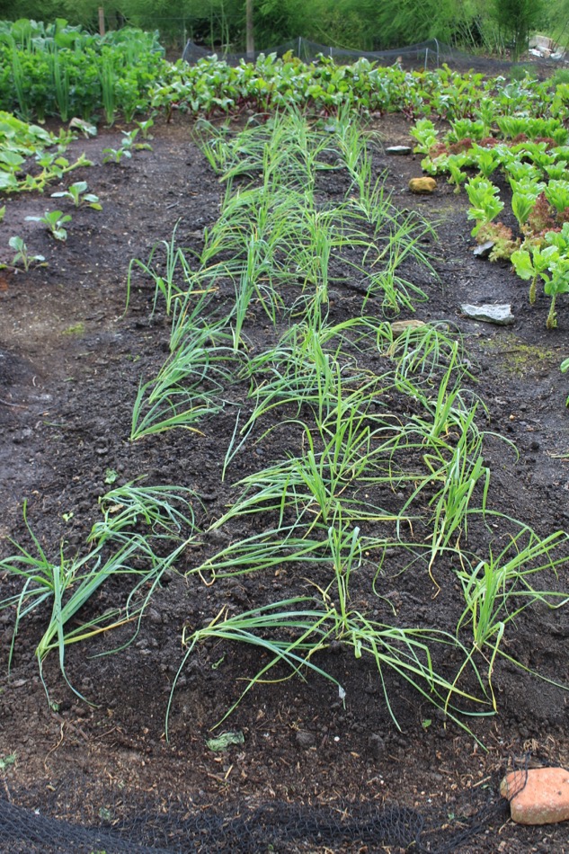 Shallot harvest, Zebrine from seed, dug bed on left and undug on right