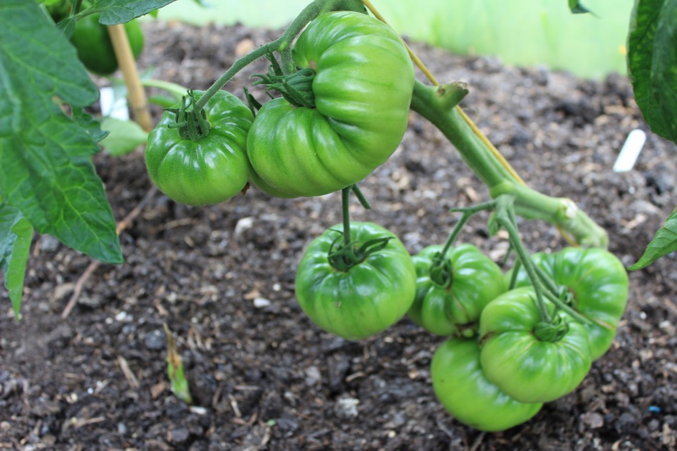 Beef tomatoes take longer and need the warmth which looks to be arriving now. Fruit set over the last month has been poor from a lack of sunshine and warmth, especially on beef tomatoes. Some trusses of Black Russian are completely missing here.