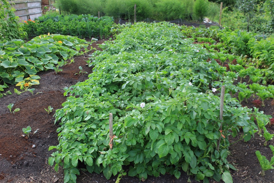 Before harvest of potatoes: blight is only on the dug strip nearest to camera. Total yield was 21.6kg or 48lb.