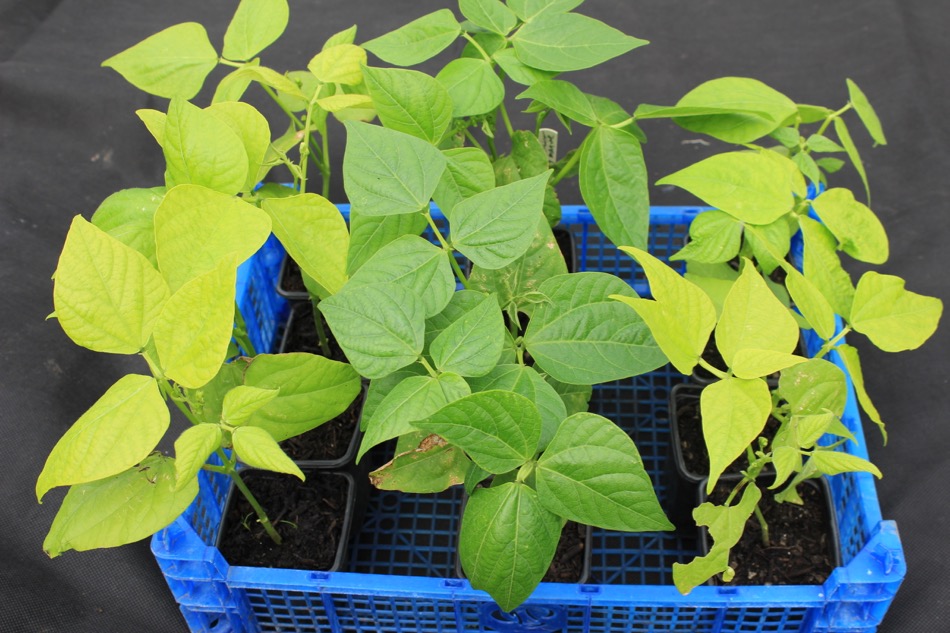 See the photos of French beans where woody ingredients are still using nutrients for their own decomposition. I added chicken manure pellets (New Horizon organic) to one row, hence the difference in leaf colour.