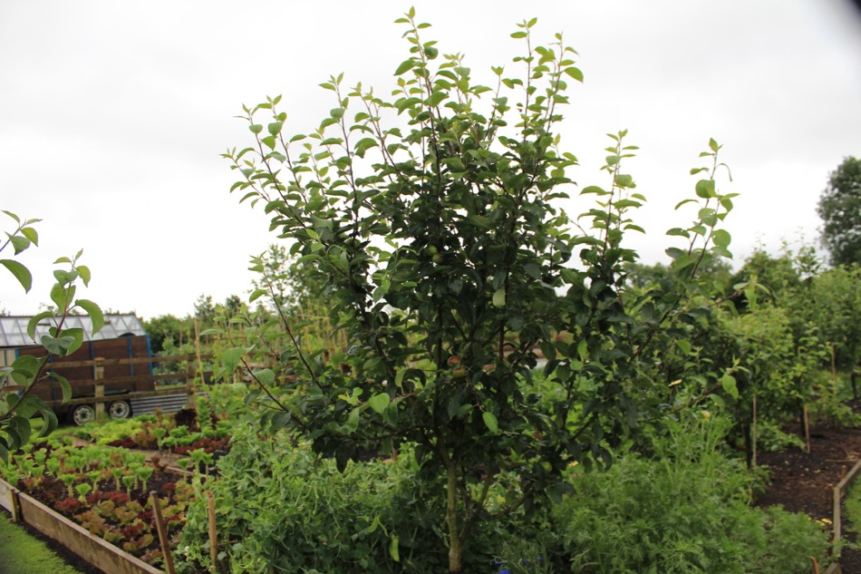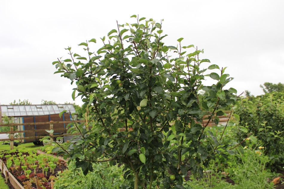 The apple tree below is in its fourth summer, I planted it as a whip (large stick).