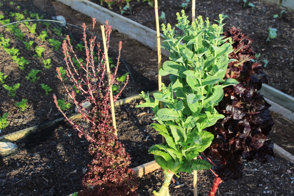 Lettuces for seed from March plantings: Lollo Rossa, Winter Density, Bijou