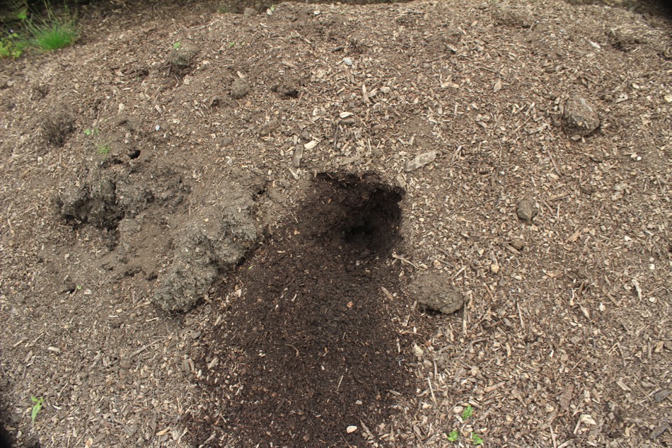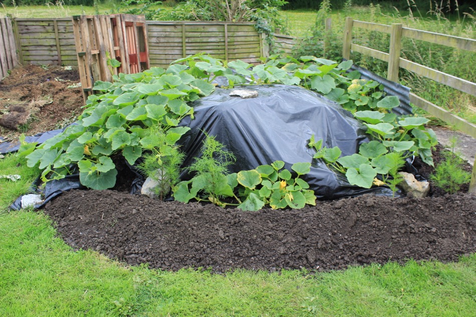 It had heavy machinery all over it, during building work elsewhere on the site. The machines also scraped off and stacked the soil, not improving its life qualities. Beds were then filled with this soil and horse manure, which included wood shavings, so not an ideal start.