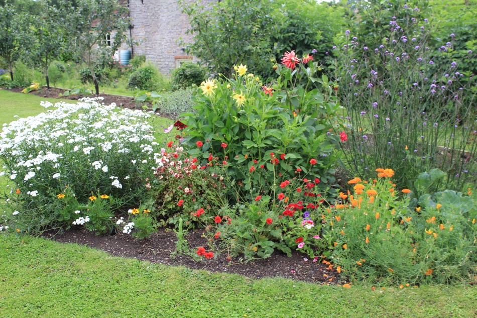 For my flower borders I use about an inch a year of compost mulch, green waste is ideal as flowers are less hungry than veg. I have few shrubs so slug habitats are few, except near the fence where Gert’s border on the other side is full of ivy and other green leaves. There I grow bulbs, verbenas, tangerine sage etc there and keep zinnias and marigolds for the more slug free areas.