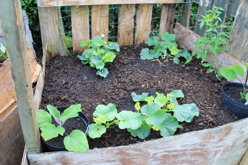 Runner beans and tomatoes after 2 weeks in fresh poo