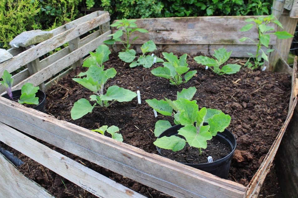 I am impressed no end to measure 53C in that heap of manure, and it was 61C after being moved. The aubergines are growing in a surface layer of well rotted horse manure from Jenny my neighbour. We knew this to be good from how some Jerusalem artichokes are growing in a new bed made entirely from it, simply placed on a very weedy area.