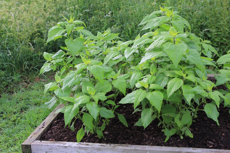 Jerusalem artichokes in a bed of old horse manure on weeds