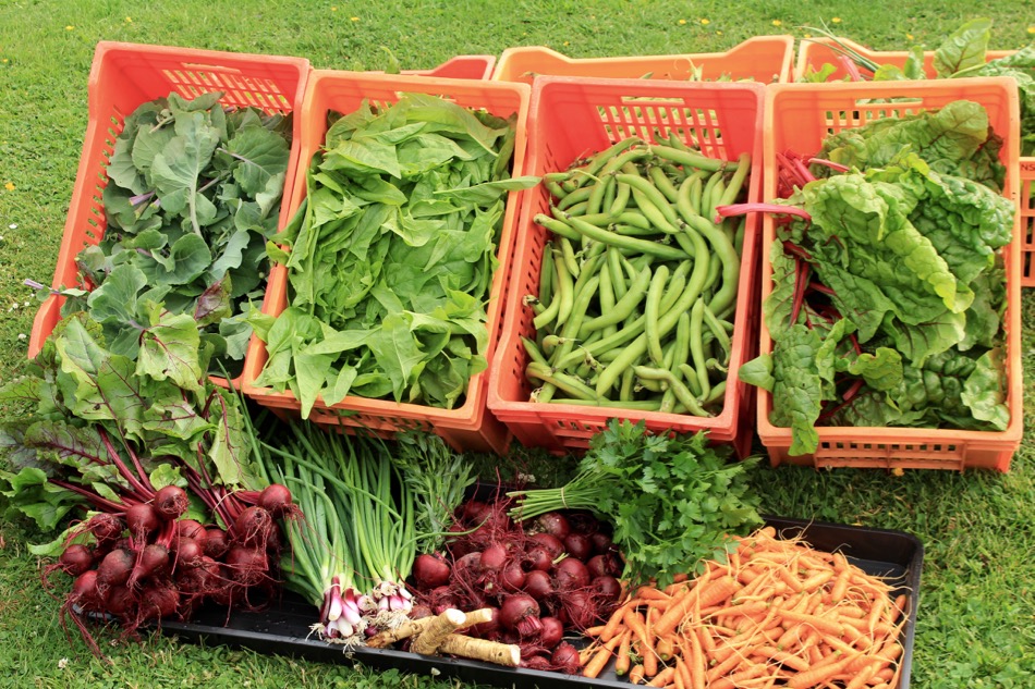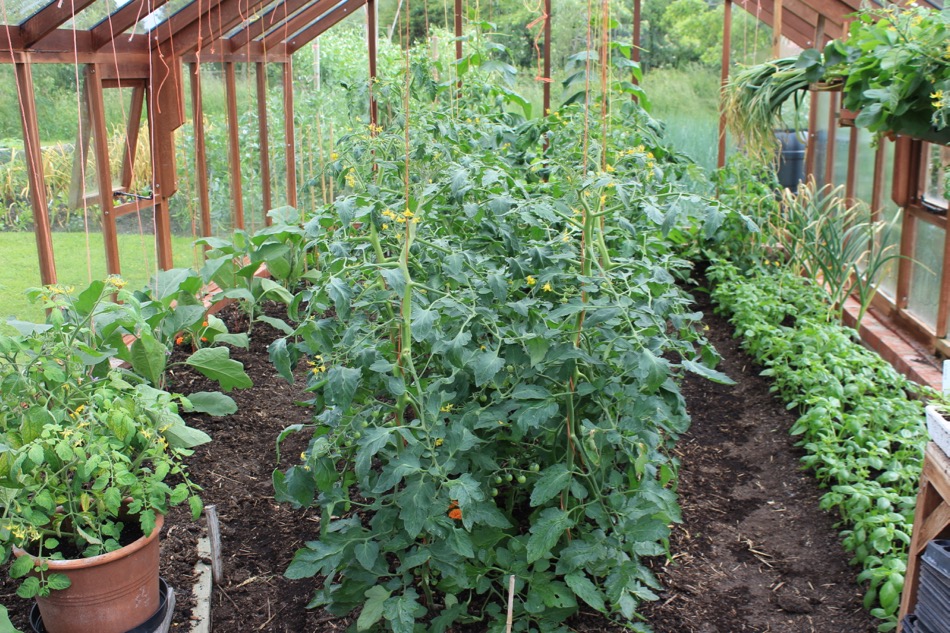 Its so busy here now with many harvests to make as well as new sowings and keeping the garden tidy. Spinach is finishing as it rises to flower, being replaced by chard. Nantes carrot, Boltardy beetroot, first early potatoes and November-sown beans are all good. Peas of many types are yielding their sweetness, Caraflex and Golden Acre cabbage are hearting, calabrese and cauliflower are just starting and courgettes have given a first pick, with indoor cucumbers not far behind.