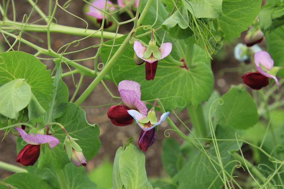 In March I module-sowed some of Hodmedod’s Carlin peas, to harvest dry, and they turn out to have beautiful flowers too. Also I took some green lentils from a jar in the kitchen and module-sowed them, then planted in April after lambs lettuce, and they are just starting to offer little white flowers, on very healthy plants. I am intrigued.