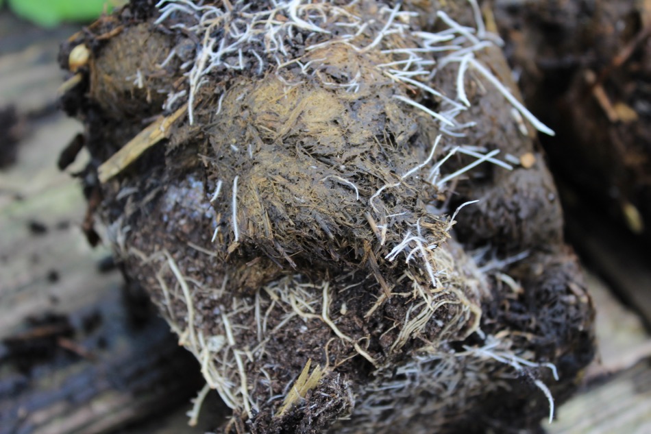 Fortunately they have grown fine and I am intrigued to see how many new roots are growing in the fresh manure. The old saw about fresh manure “burning” roots applies mostly to chicken manure.