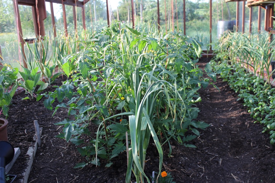 Home acres greenhouse on May 31st, the garlic is ready to harvest