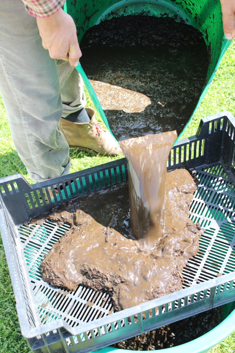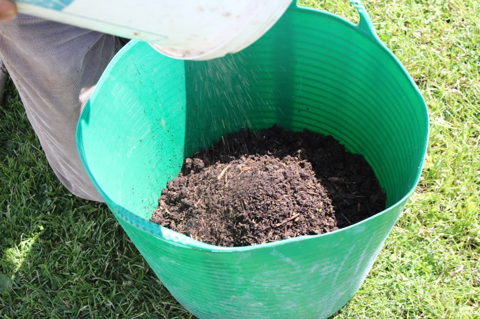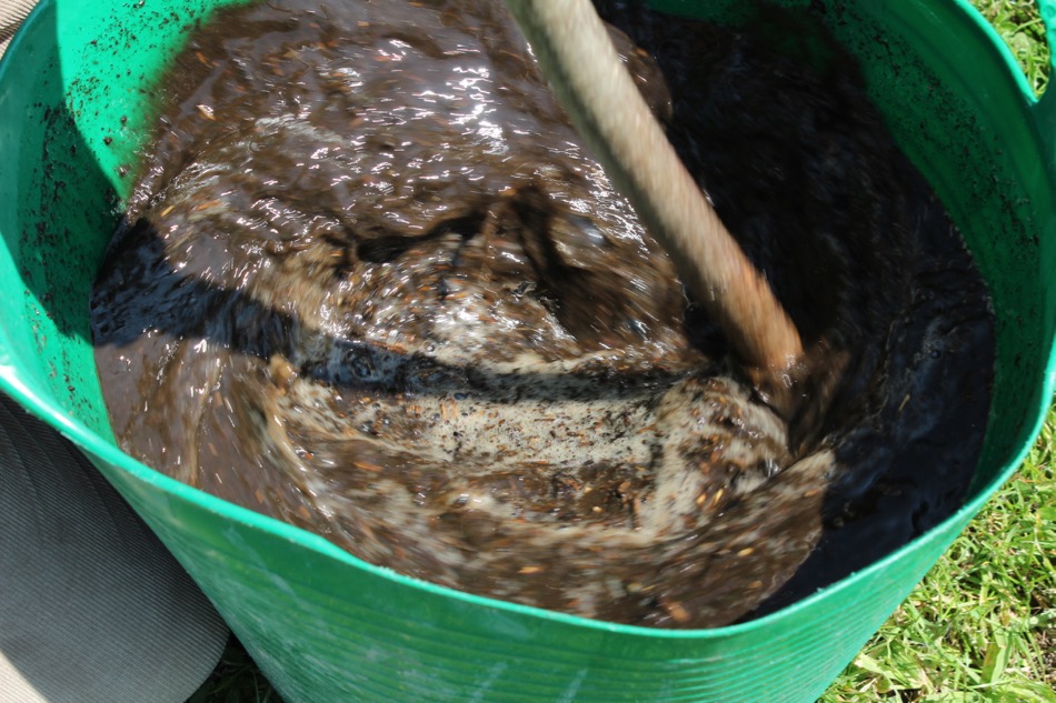 - Compost extract needs two or three handfuls of your best compost, sweet smelling and full of healthy organisms. Add water to half fill a large bucket, then stir in vortical fashion for around 15 minutes. Breaking the vortices by changing direction is a way to introduce more air and energy. Then water this on soil wherever you want to increase growth. I am unsure of how much to use: we spread a half bucket over one bed of 4x20 feet. I don’t expect to see a huge difference as the soil is already lively.