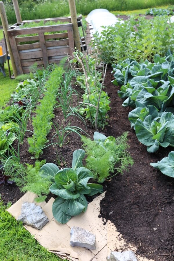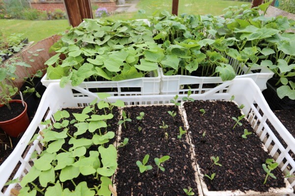 Winter brassicas sown 10th May: Brussels, cabbage, kale