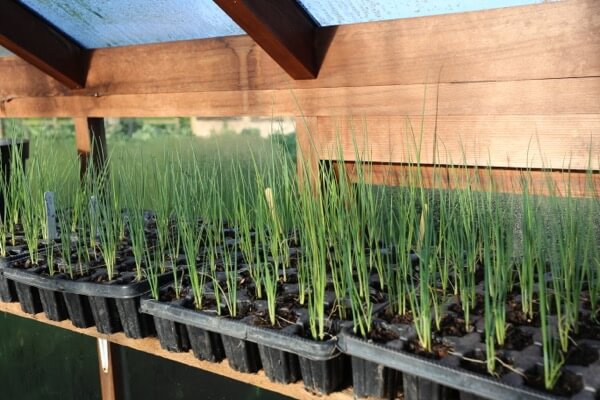 Sweetcorn as soon as possible. Already some leek plants are coming ready, and you can plant them any time until about mid August. For later plantings, best pot them on or give them space in the row, if in open ground.