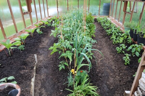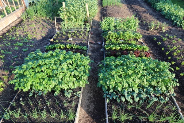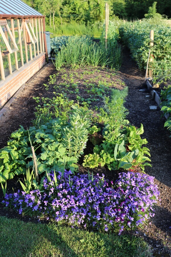 May is a frantic changeover month when we also replenish the soil, with a mulch of 3in/7.5cm compost. This is the only soil/plant feed I give until next May, so it’s good for a year of cropping, and I give no liquid feeds to summer crops such as tomatoes, again saving time.