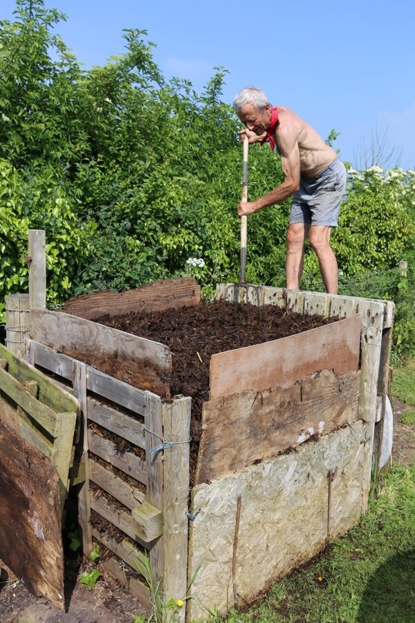 Now is the season for filling those heaps. Here it needed three months to fill our first bay, partly thanks to cool weather, and it will be just one month for the next one to fill. As well as grass mowings and increasing numbers of crop remains, such as broccoli stems and leaves, we are adding verge prunings, coffee grounds and straw/manure from a neighbour’s barn clearing, cardboard, paper and wood chips I was given two months ago. They are already decomposing noticeably.