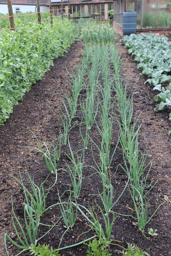 An allotmenteer from Tauton, Alan Cavill who is hugely experienced in growing vegetables, told me that his no dig onions are in a minority for growing strongly without watering, and for not bolting. The soil is quite light on his site and after digging or rotating, new plants struggle to establish roots in a surface that dries rapidly. Perhaps this is why the peas, spinach and beetroot are so poor in the dig bed of my experiment.