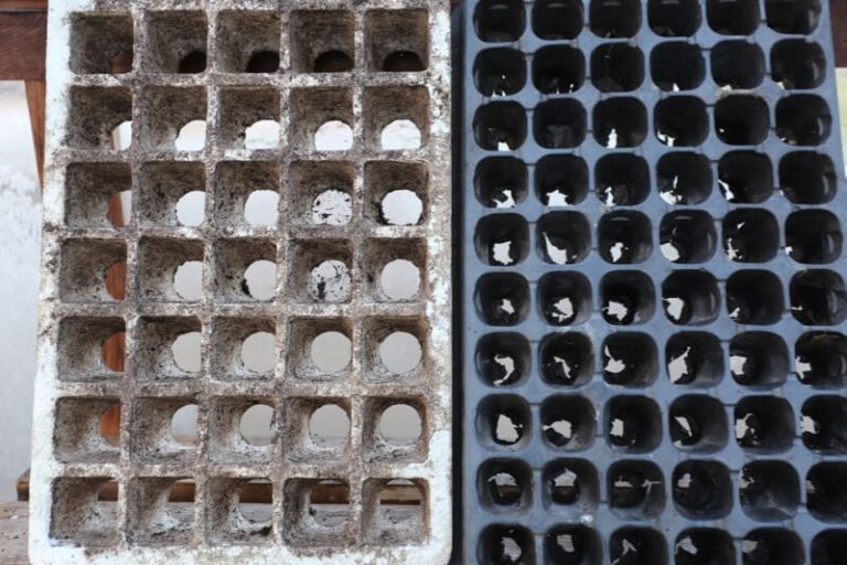 Drainage holes in the polystyrene and plastic trays, which we reuse time and again, no cleaning needed