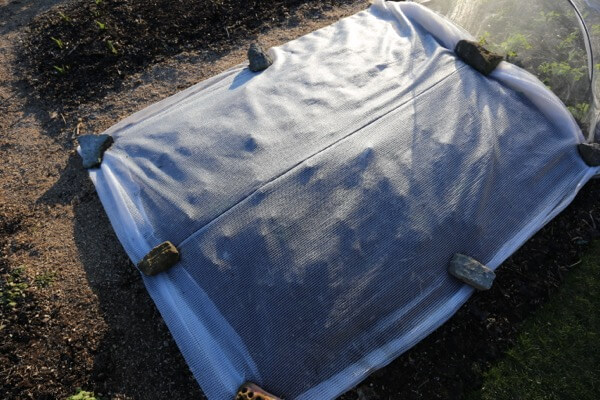 Another trial on this bed is of Thermacrop which I have purchased as a fleece-alternative, because it’s suddenly difficult to buy 25gsm fleece. The nearest equivalent is 30gsm and I use that, but I think the Thermacrop may be as effective and also should last for more years’ use, because it’s more the texture of mesh, yet softer.