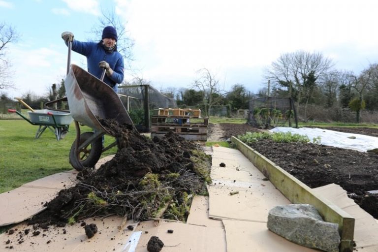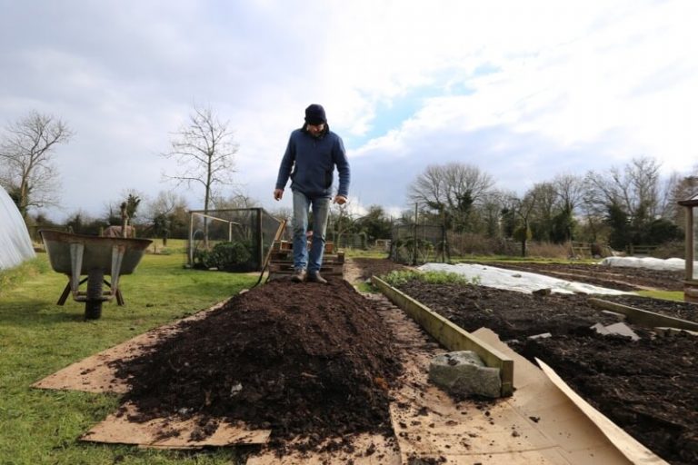 Four and a half barrows of different composts on top, and we walked on it at all stages