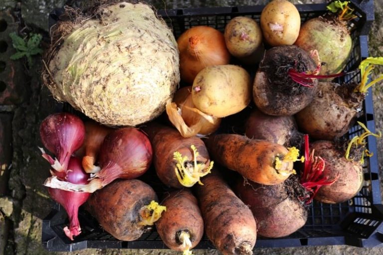 The harvests that one puts by in summer and autumn are coming into their own now. My root vegetables are either in sacks or crates in the brick lean-to (house annexe) which has an earth and brick floor: it’s not frosty and mostly damp + cool.