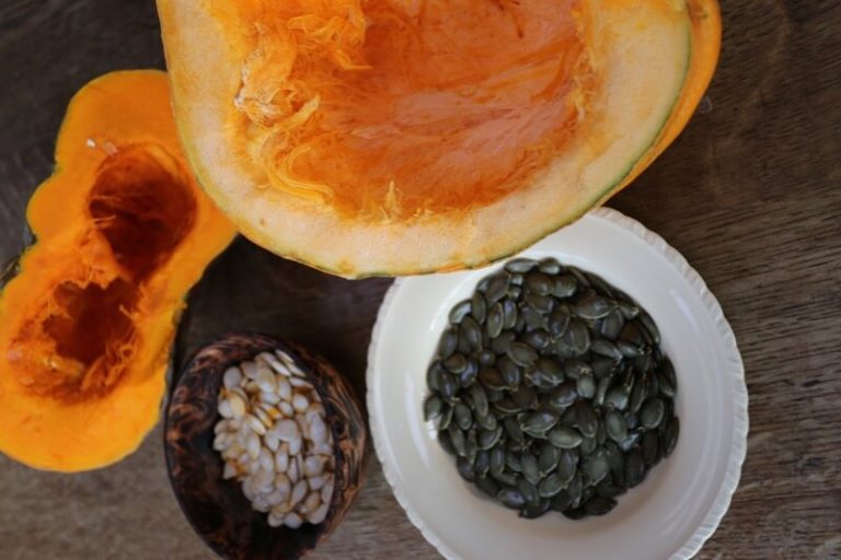 Squash and their seeds: the green and hull-less seeds are from Pumpkin Nut/Gleisdorfer, whose flesh is much less sweet than the Marina di Chioggia on left