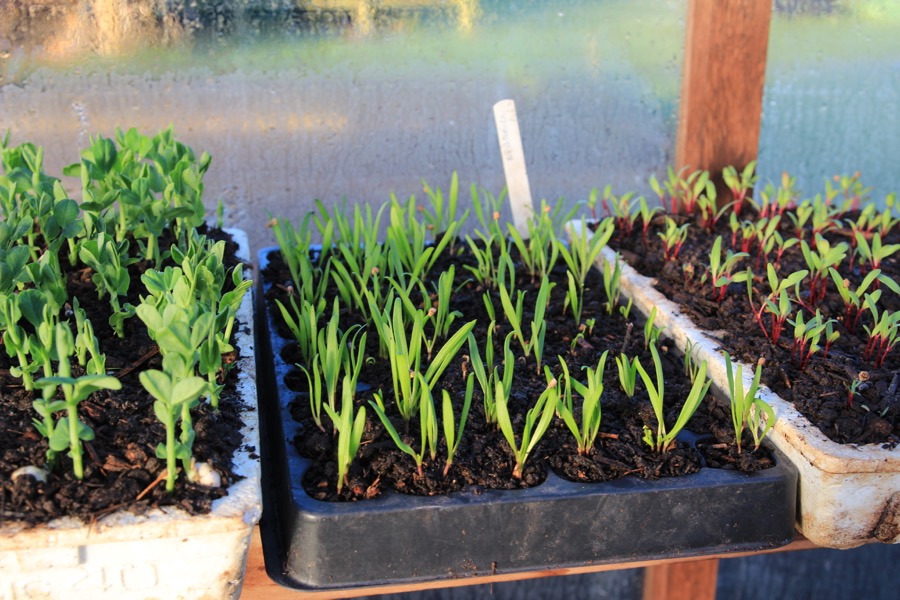 Multisown peas, spinach and beetroot, to plant outside in two weeks