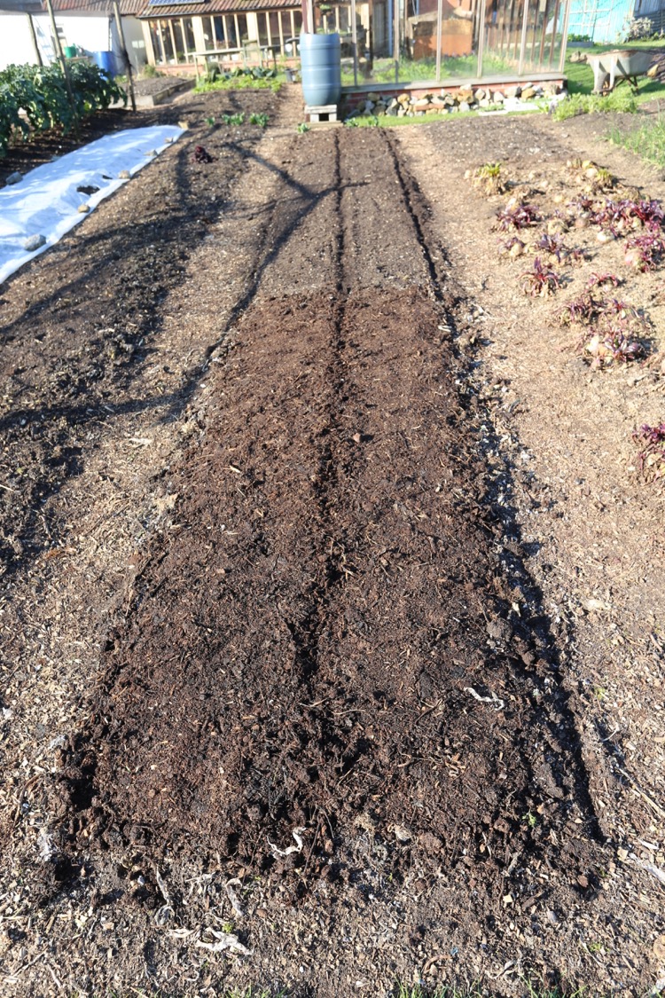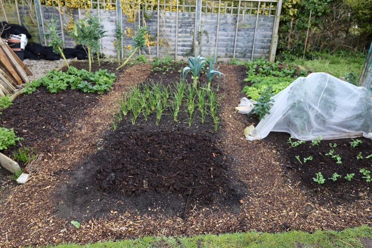 Small garden 7th March after clearing beetroot and mulching with homemade compost, spring onions behind were planted October sown September