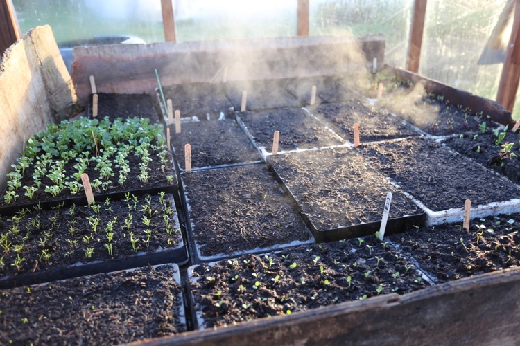 Five day old hotbed steaming and some of the steam has ammonia, I give extra ventilation