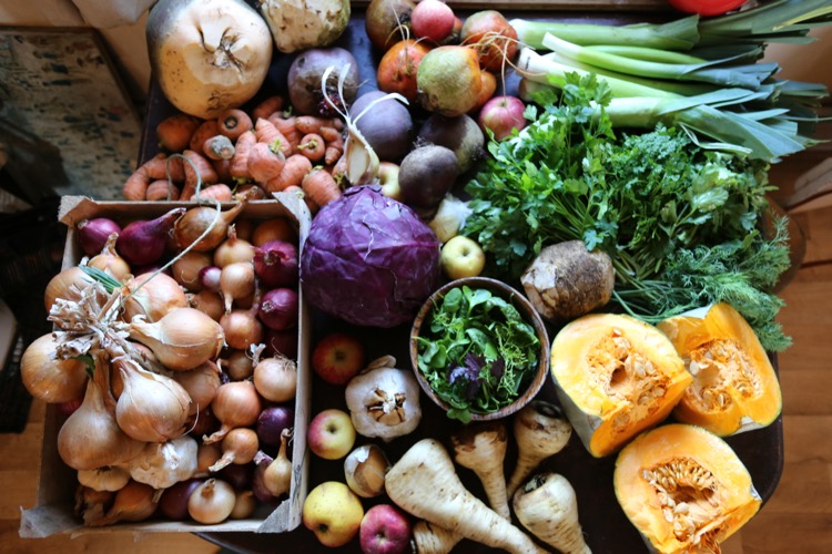 8th March pak choi, multisown leeks, outdoor spring onions and kale shoots, beetroot just harvested, carrots from store are Oxhella