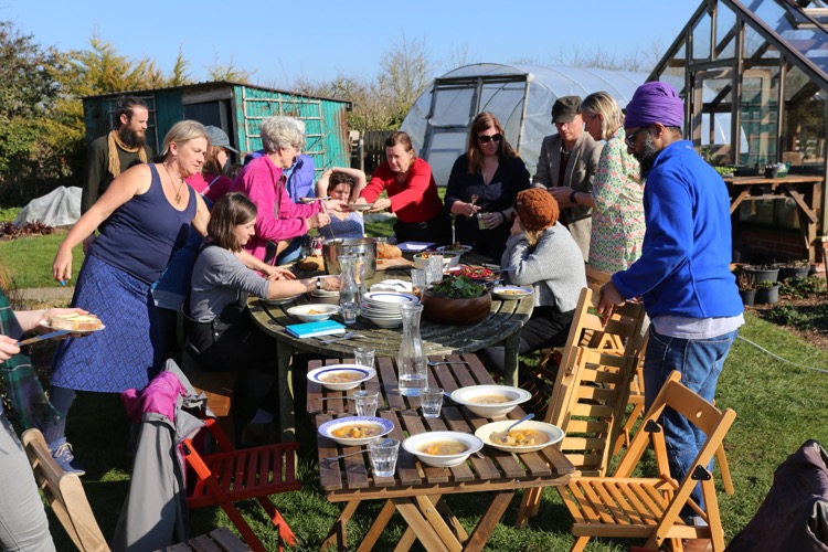 At Homeacres we had unexpectedly glorious weather for the weekend course in February sunshine, then did amazingly well over two days in March winds. There is already lots to see here and for winter courses, the polytunnel and greenhouse are useful. Steph's lunches always nourish and inspire, her Creative Kitchen book has many of the seasonal recipes.