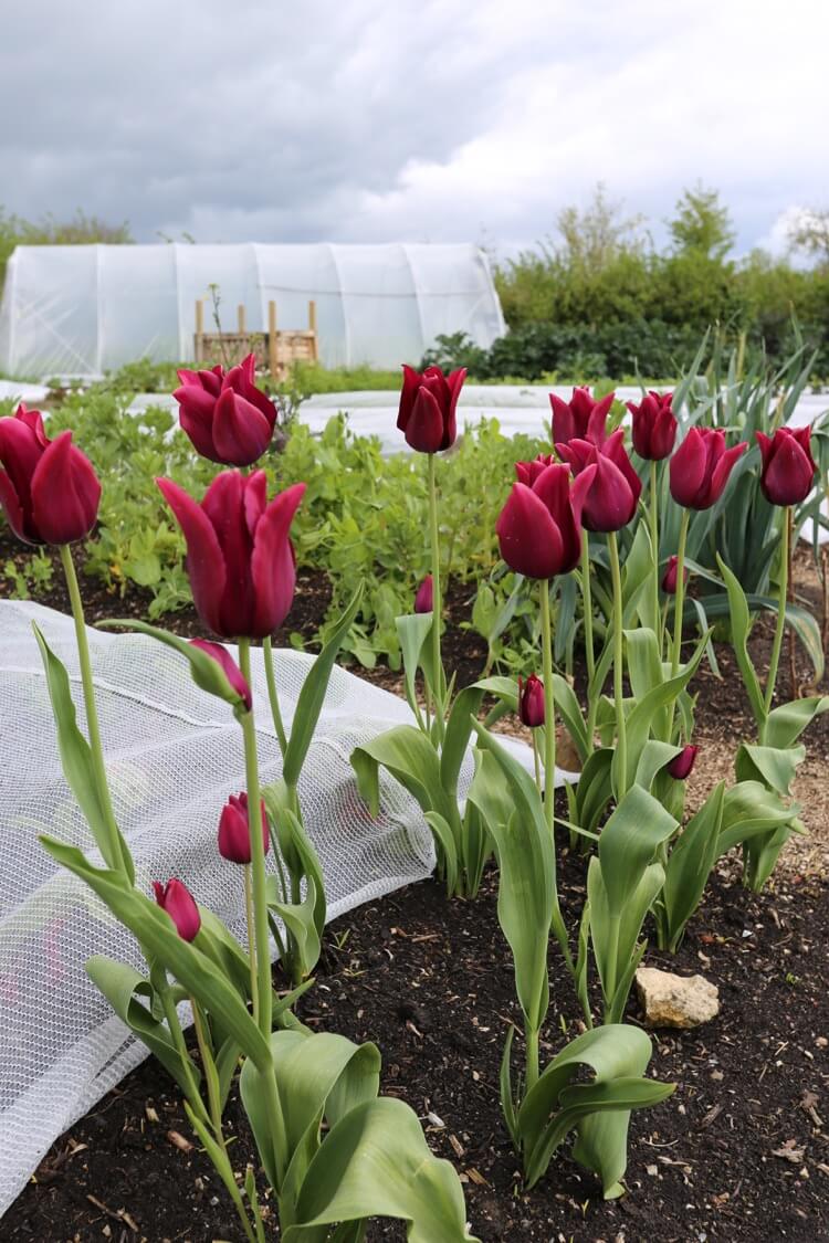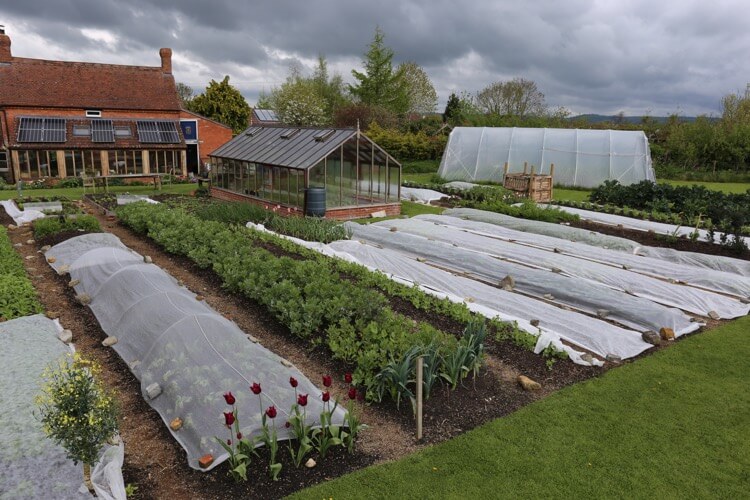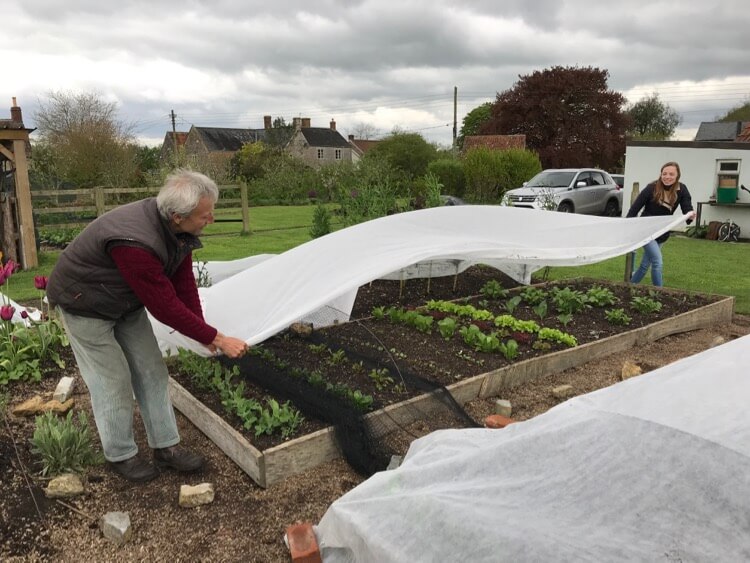 Homeacres 29th April, most plantings still covered, cool north wind and 10C/50F by day