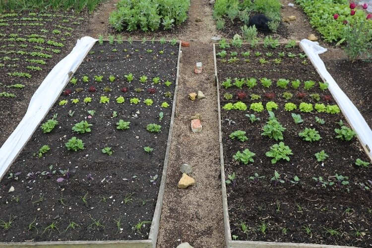 Small garden 2.4 after planting and sowing, all beds have something growing