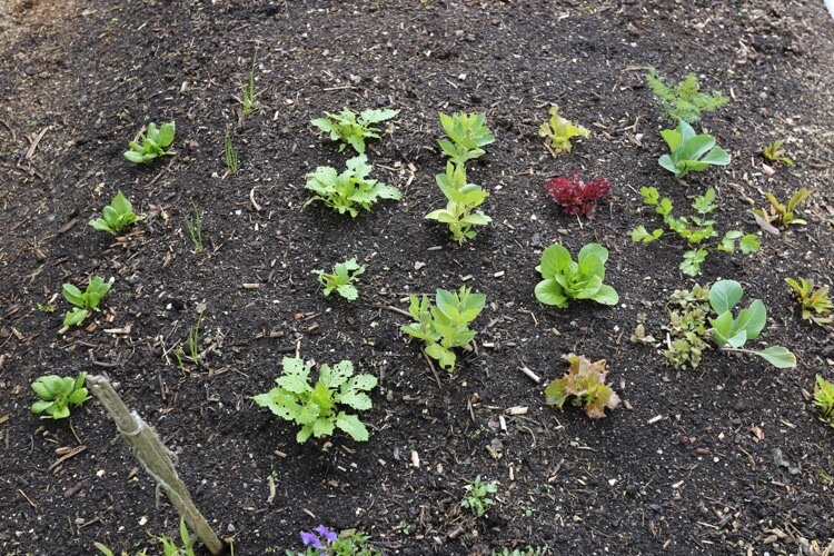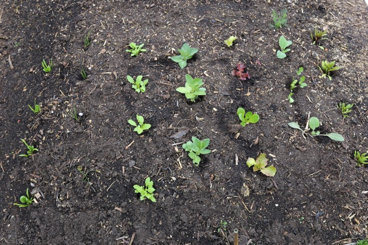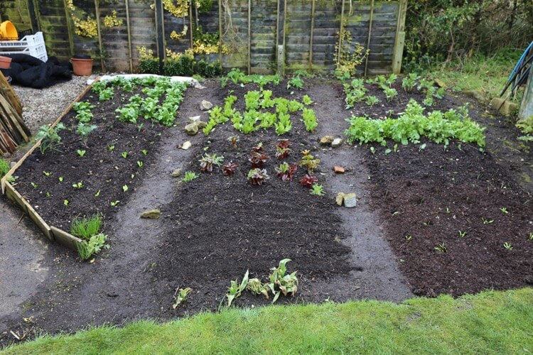 Trial beds 28th April, dig on left and no dig right, plantings of 31st March