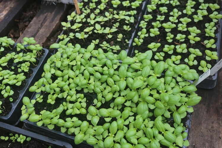 Basil, multisown in modules with 50% vermiculite added to the compost