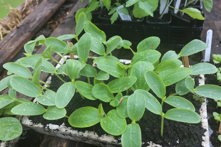 In the video on Success with Sowing, you can see me planting modules on 8th April. Below you can see how they look three weeks later, photo on right.